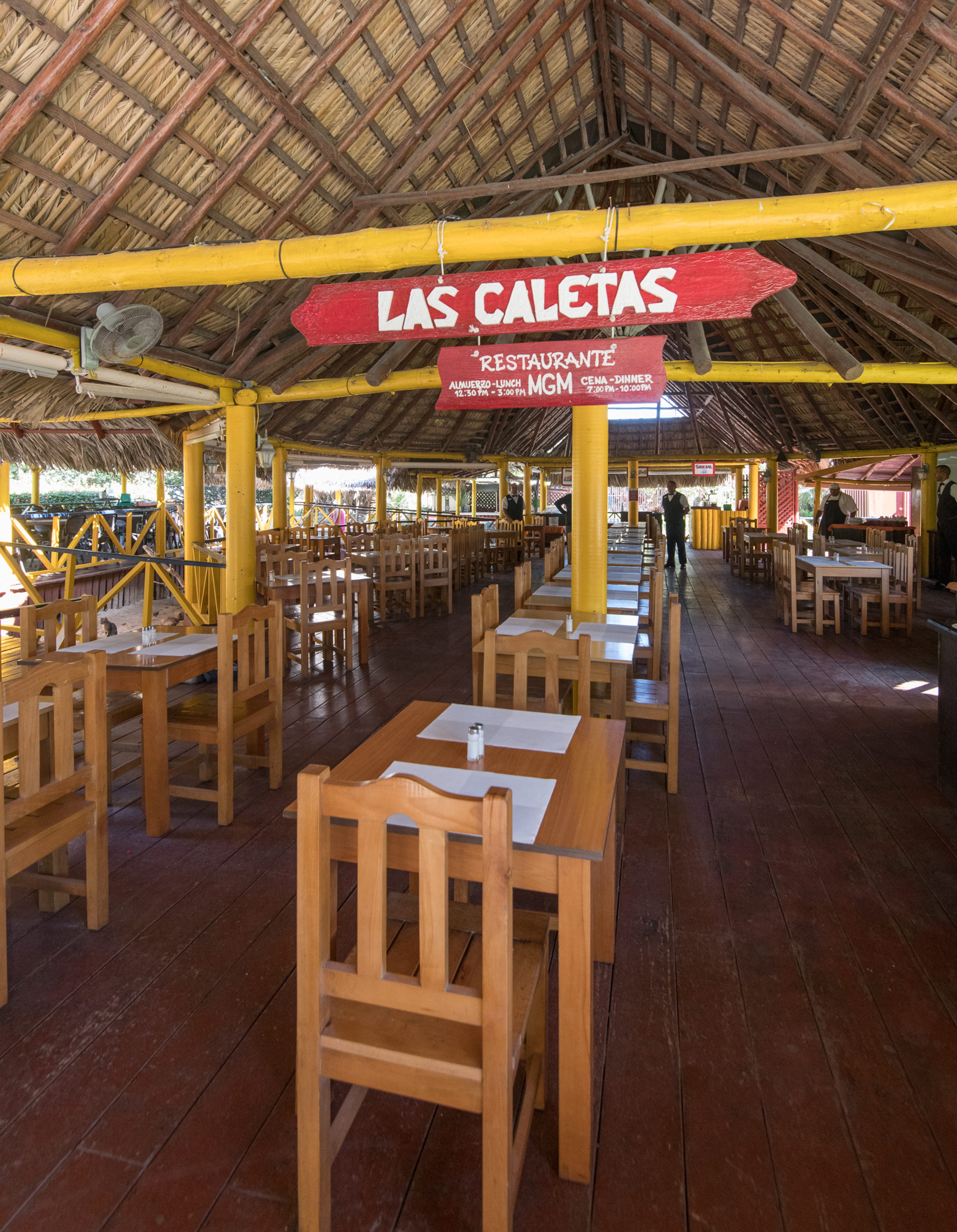 | Расписание работы основного ресторана | El Dorado: завтрак с 07:00-10:00, обед с 13:00-15:00, ужин с 18:30-22:00. Шведский стол. Ranchón La Caleta: обед с 12:30-15:00 шведский стол. Bar Hicacos: с 10:00-18:00 закуски (фиксированное меню). |