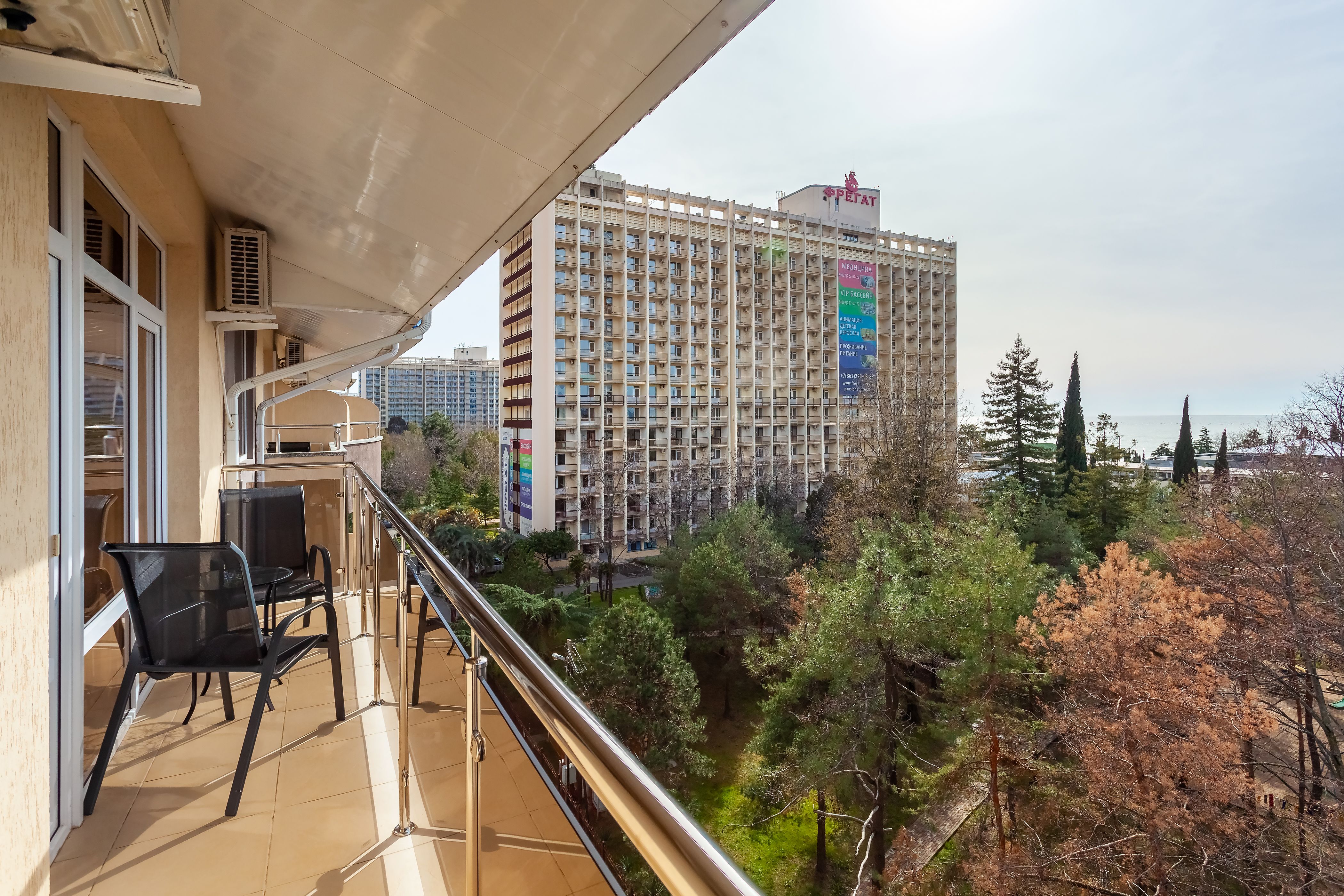 Вид из номера: на море, на парк
