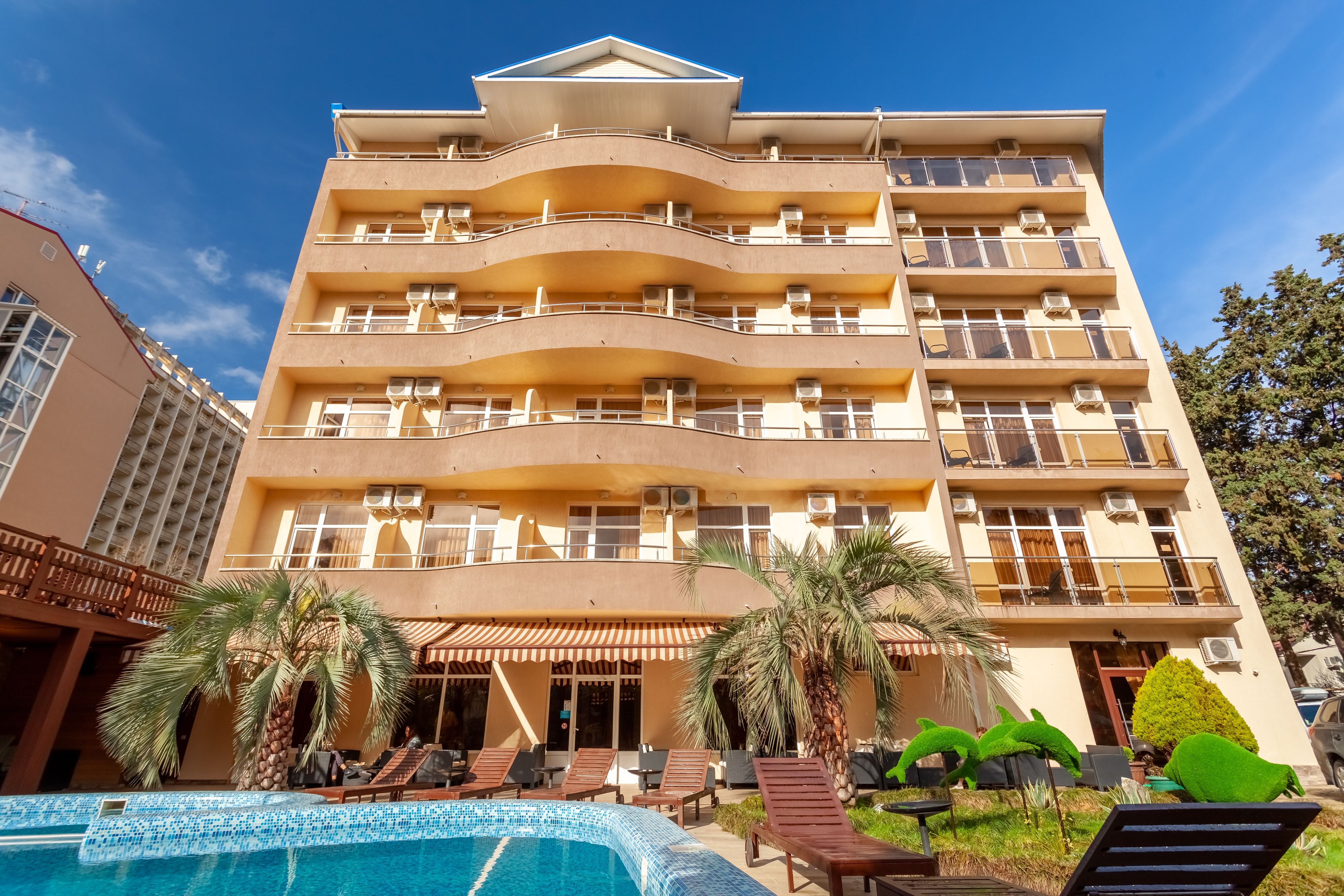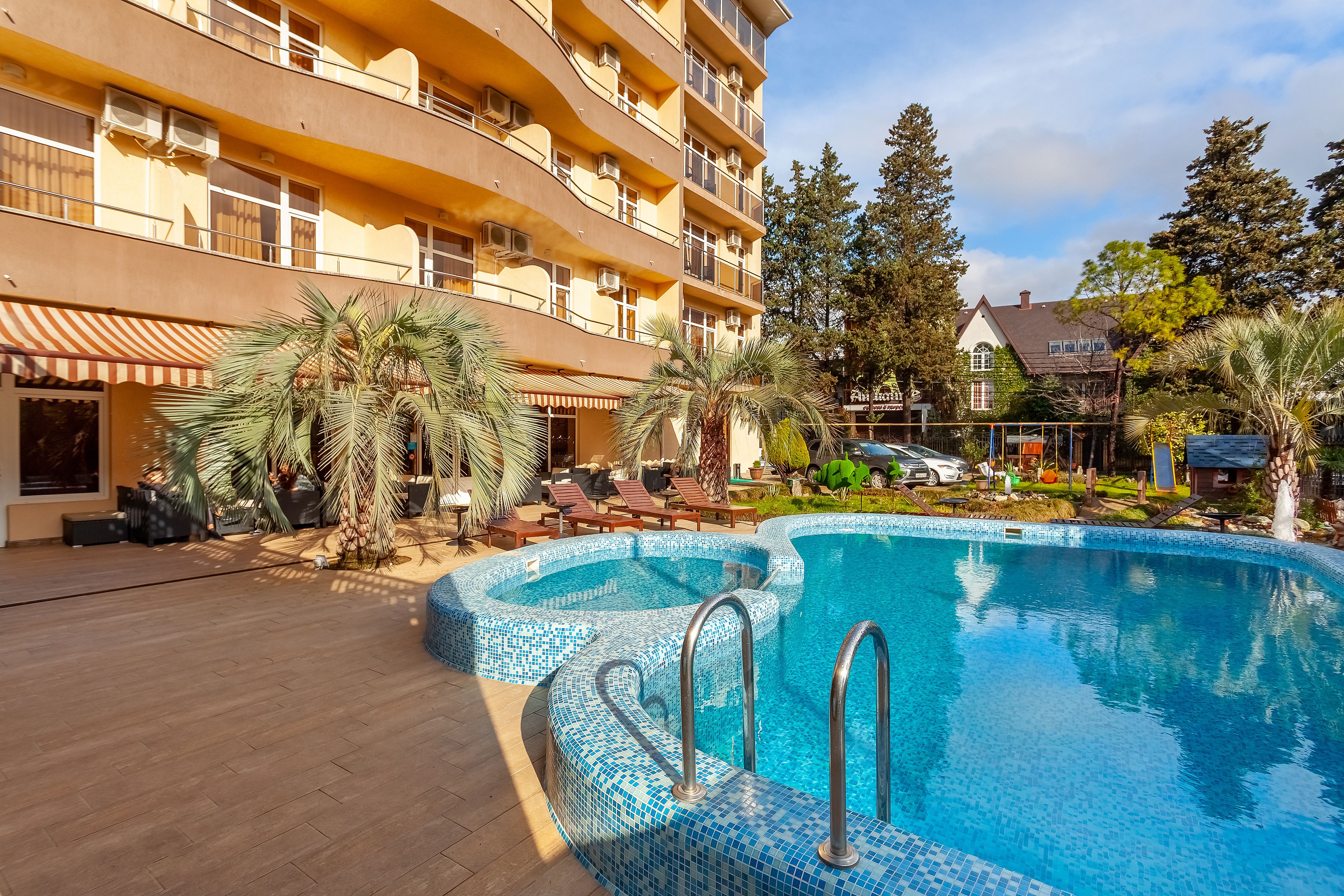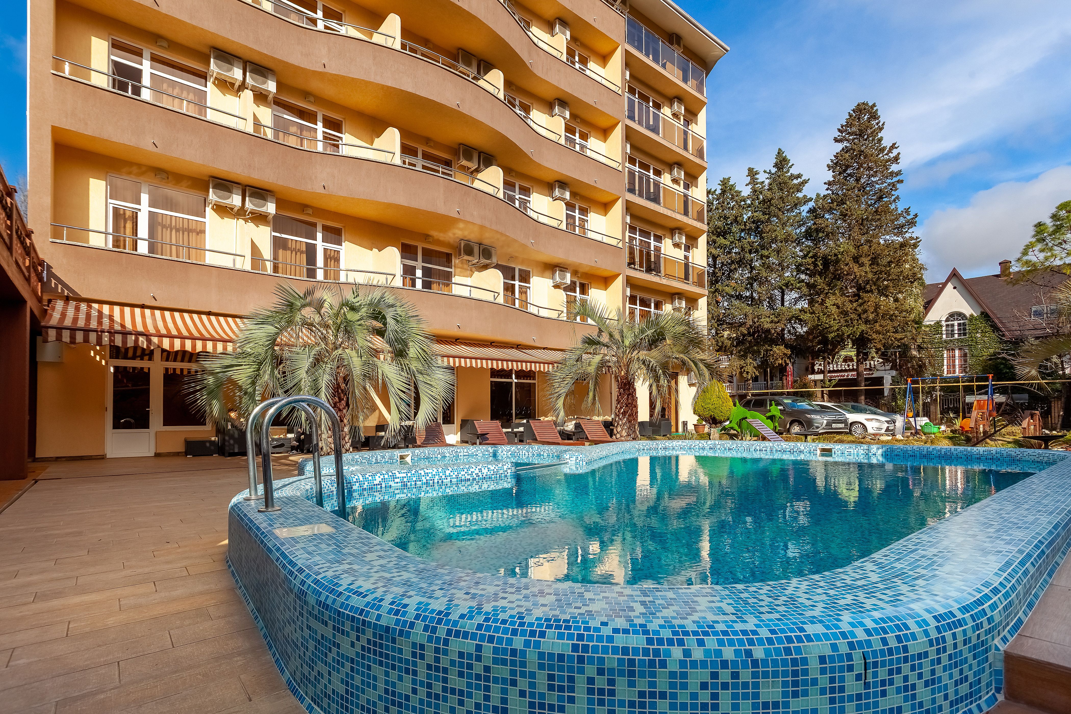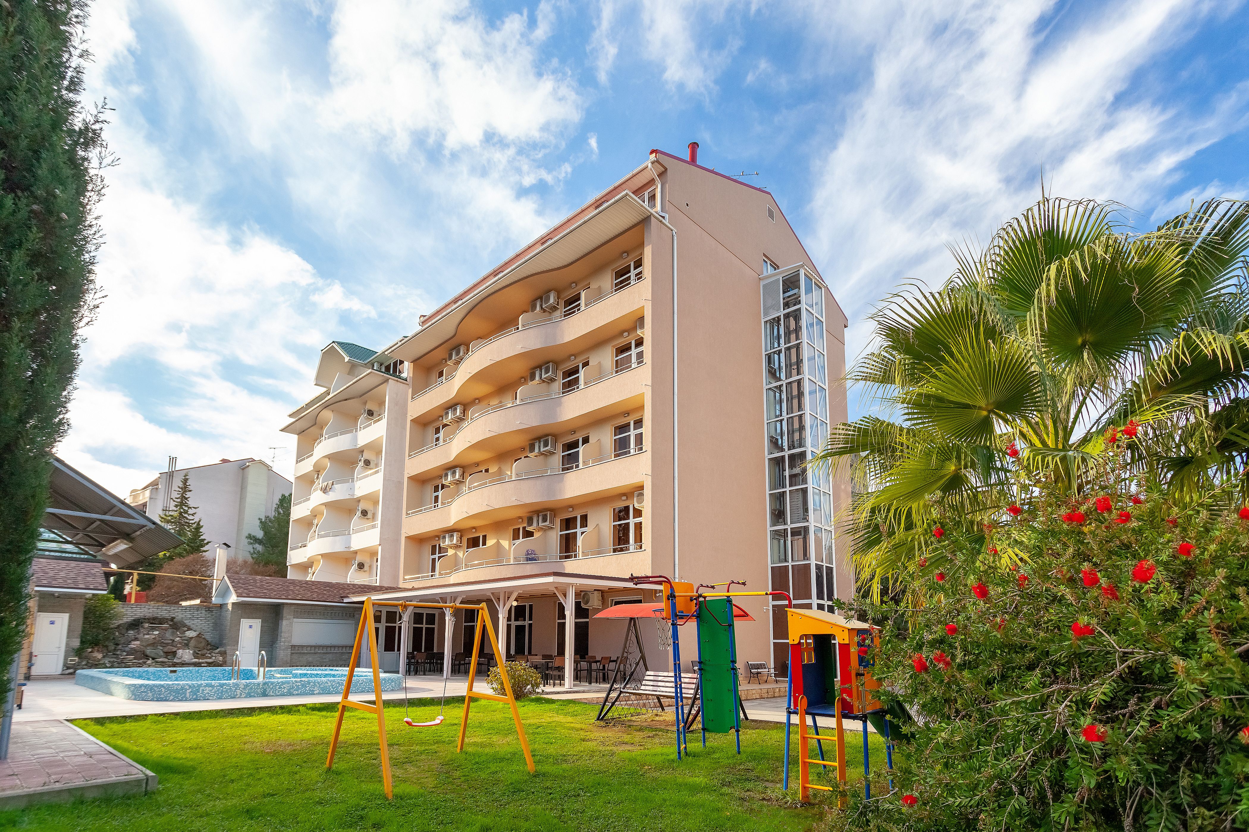 Отель находится в самом центре курортного городка Адлера. Отличное расположение и богатая инфраструктура идеально подходят как для семейного отдыха с детьми, так и для романтического путешествия.