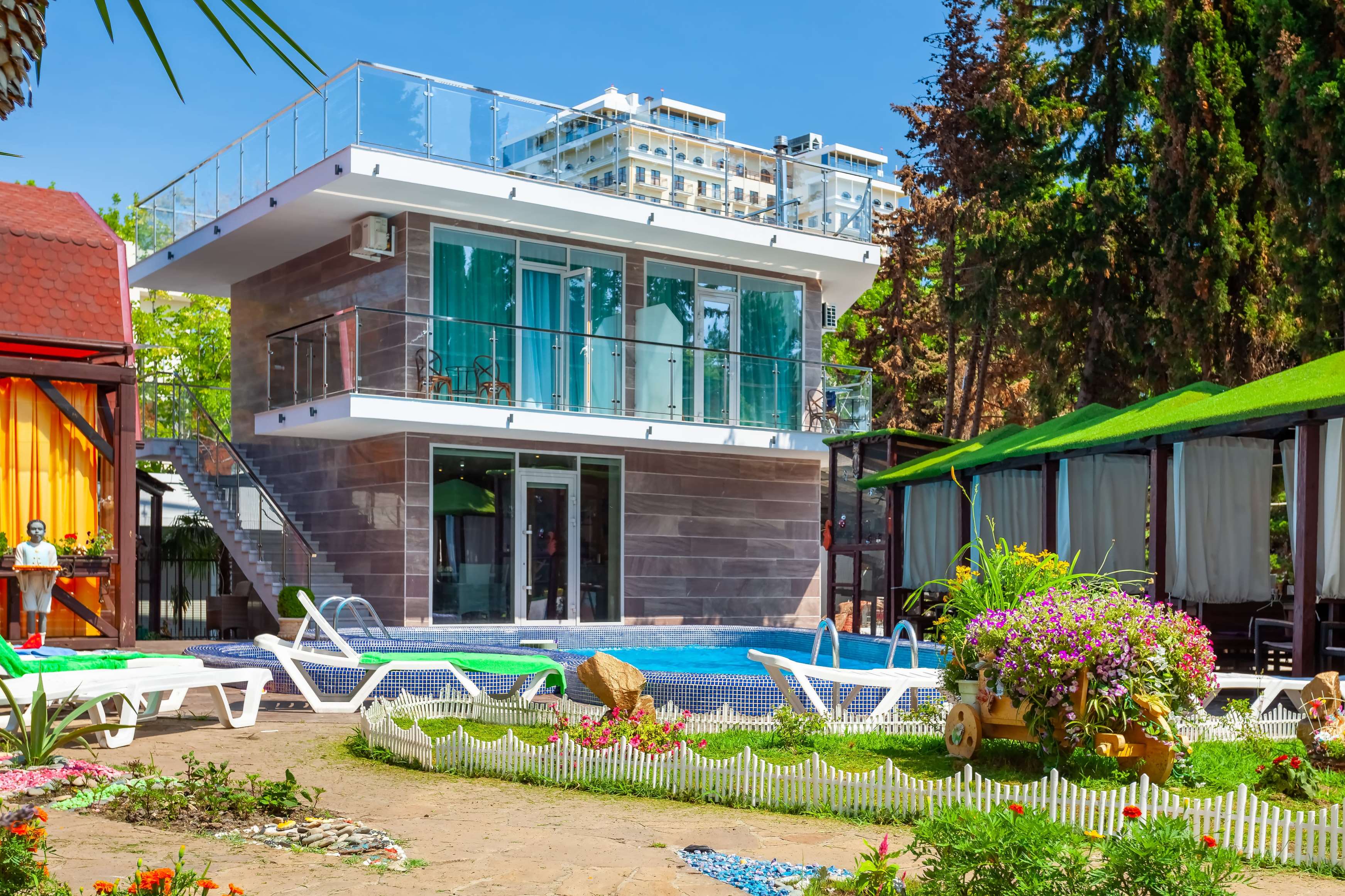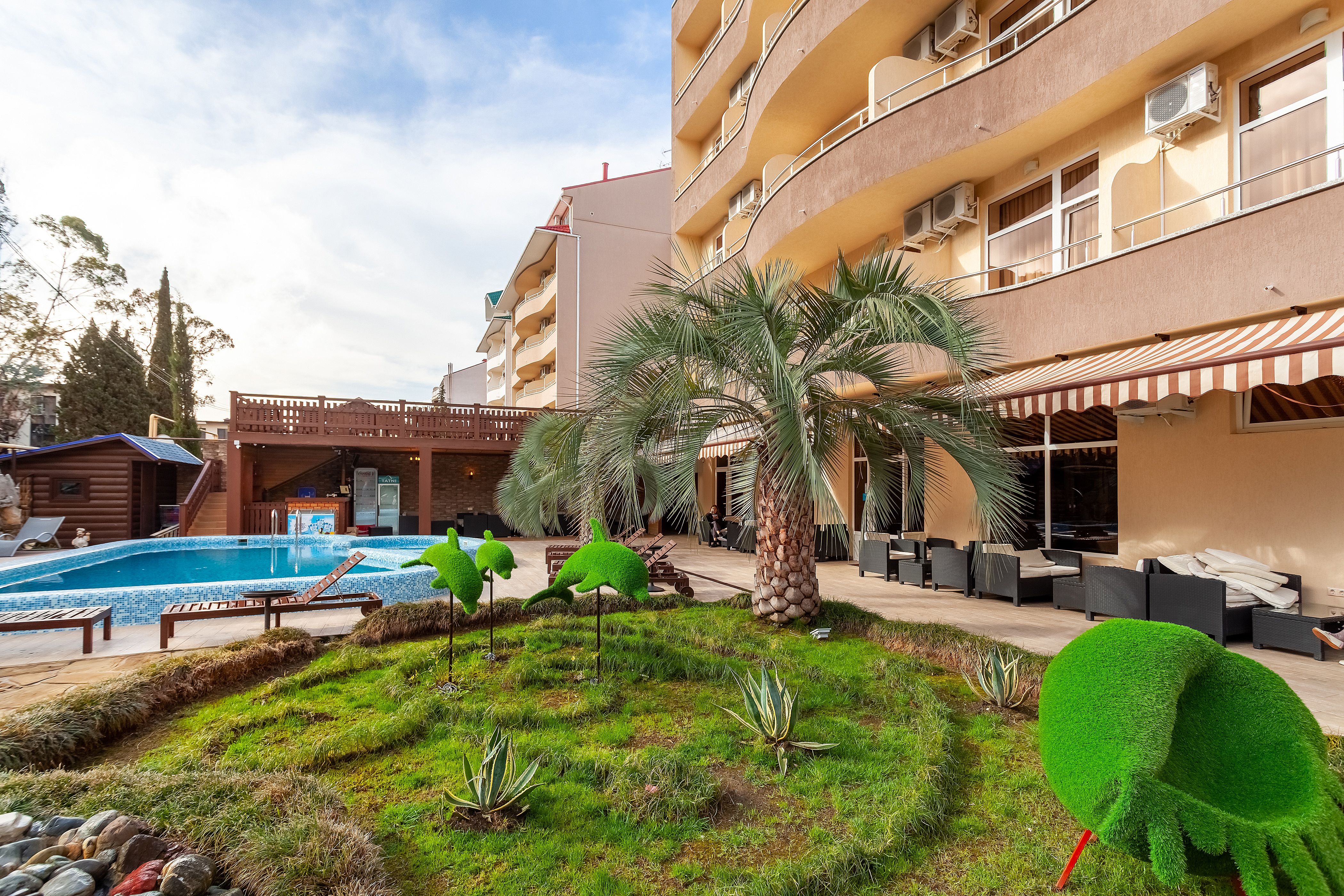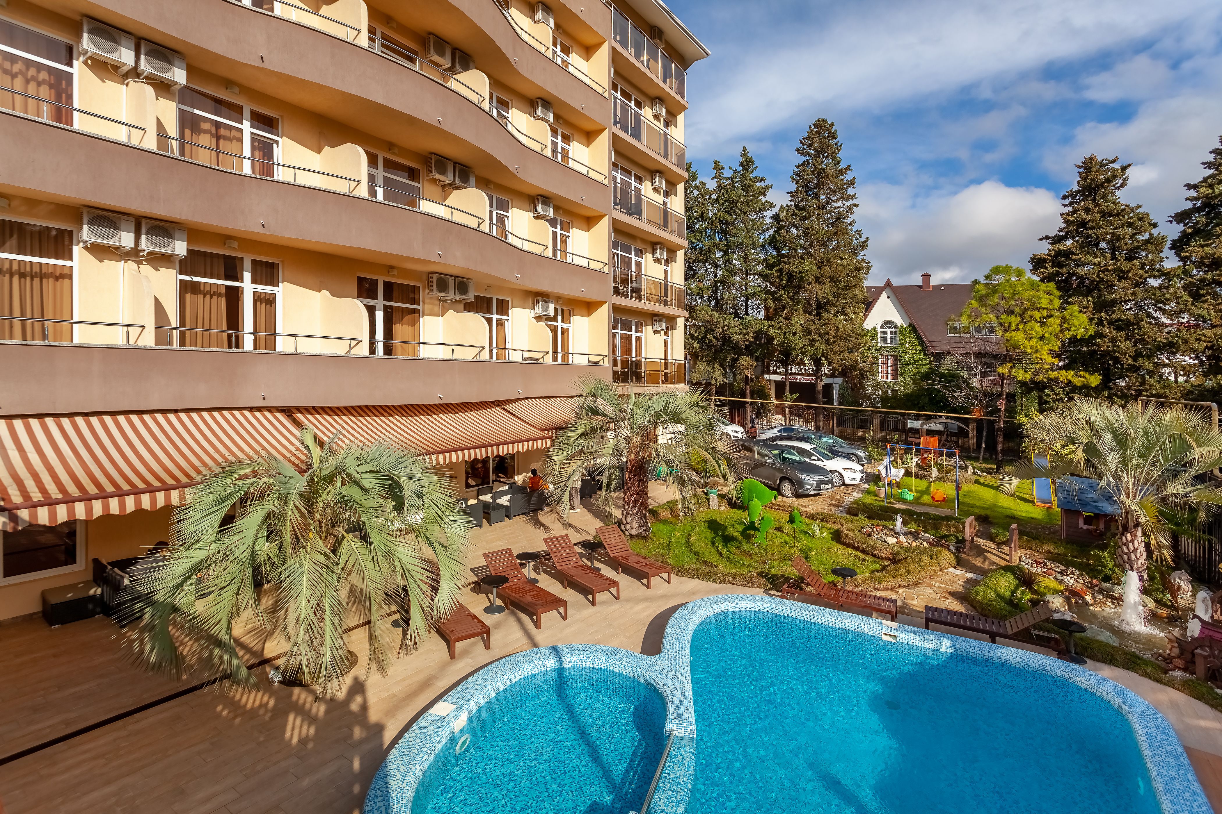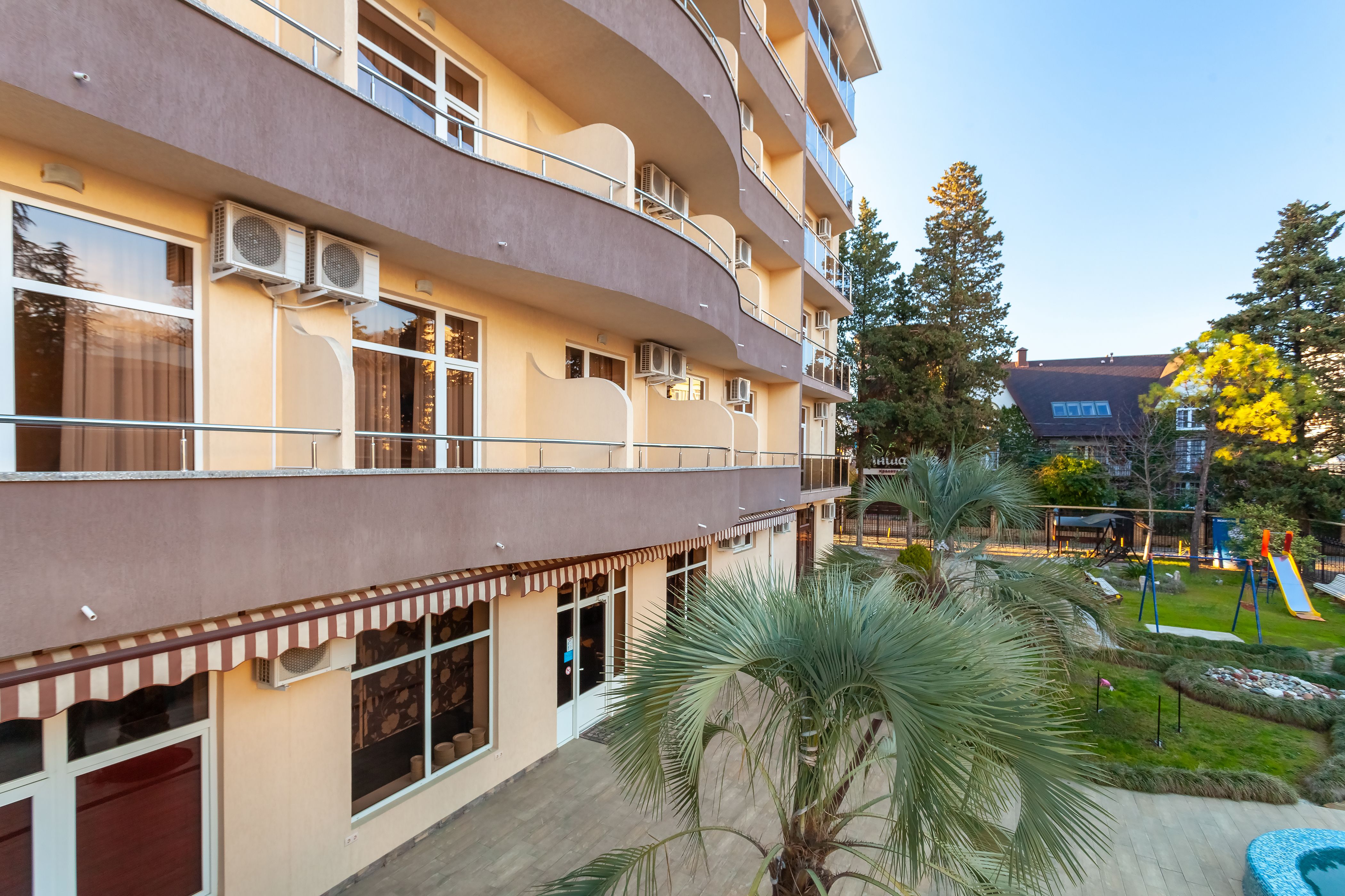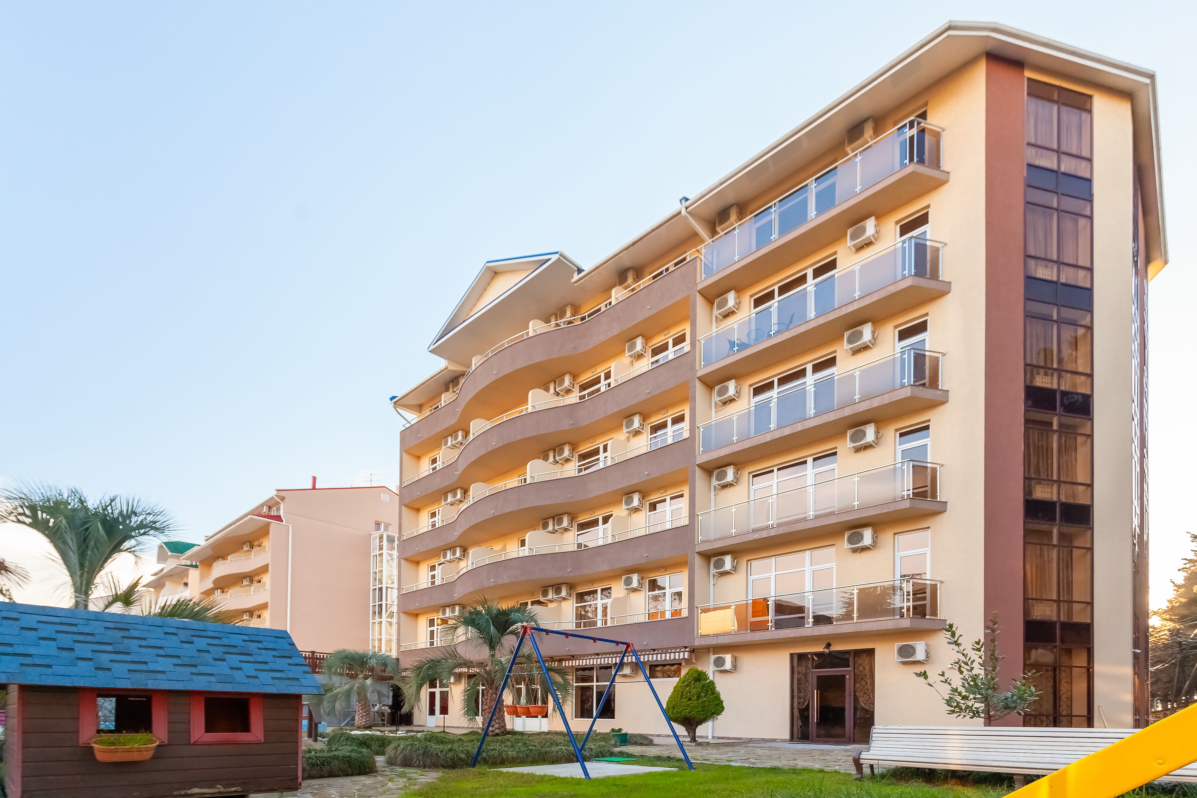 Отель находится в самом центре курортного городка Адлера. Отличное расположение и богатая инфраструктура идеально подходят как для семейного отдыха с детьми, так и для романтического путешествия.