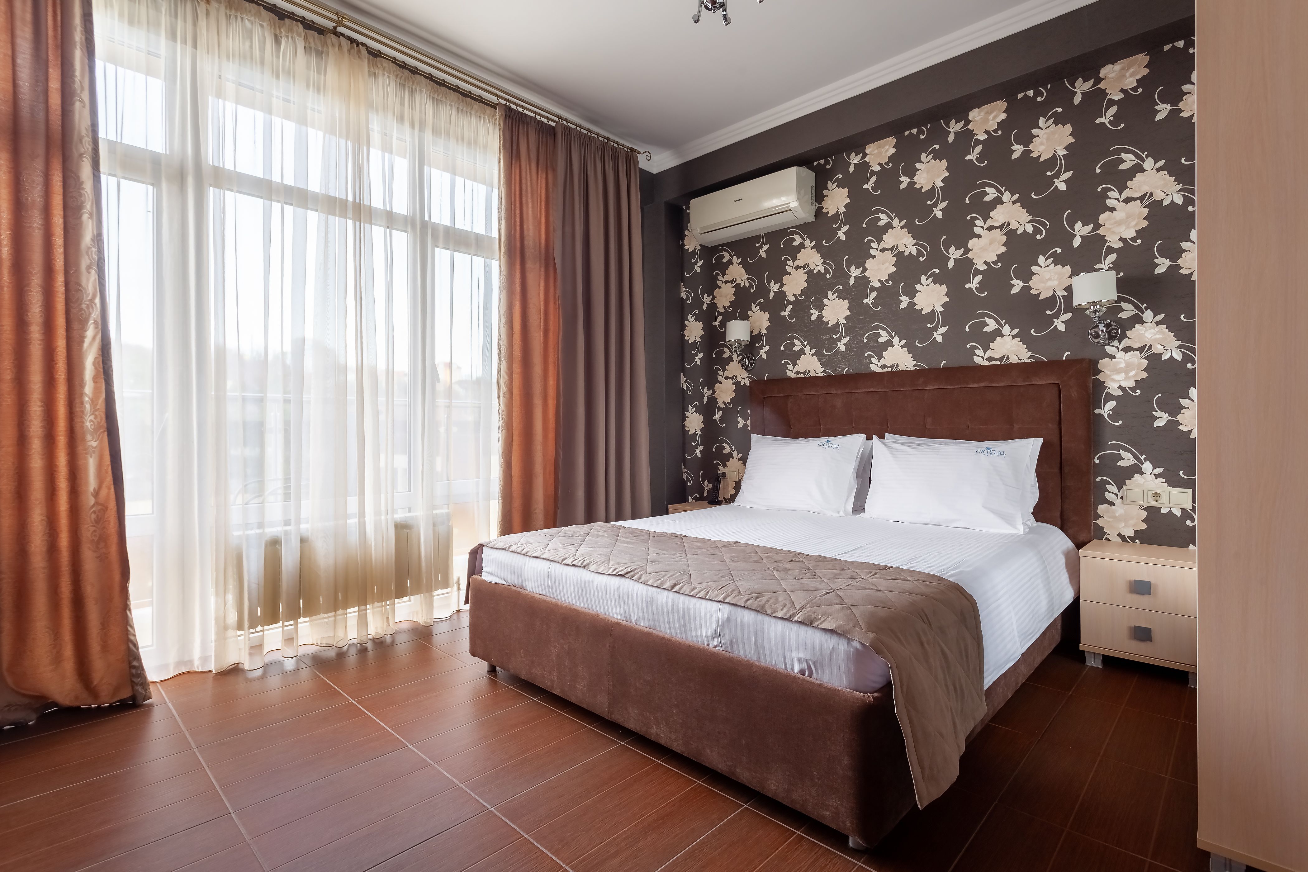 Расположение номера: 2 корпус Вид из номера: на бассейн Комнаты в номере: Спальня Кровати: 1 двуспальная Комментарии: "Делюкс (Корпус 2)" - номер без дополнительного спального места. |