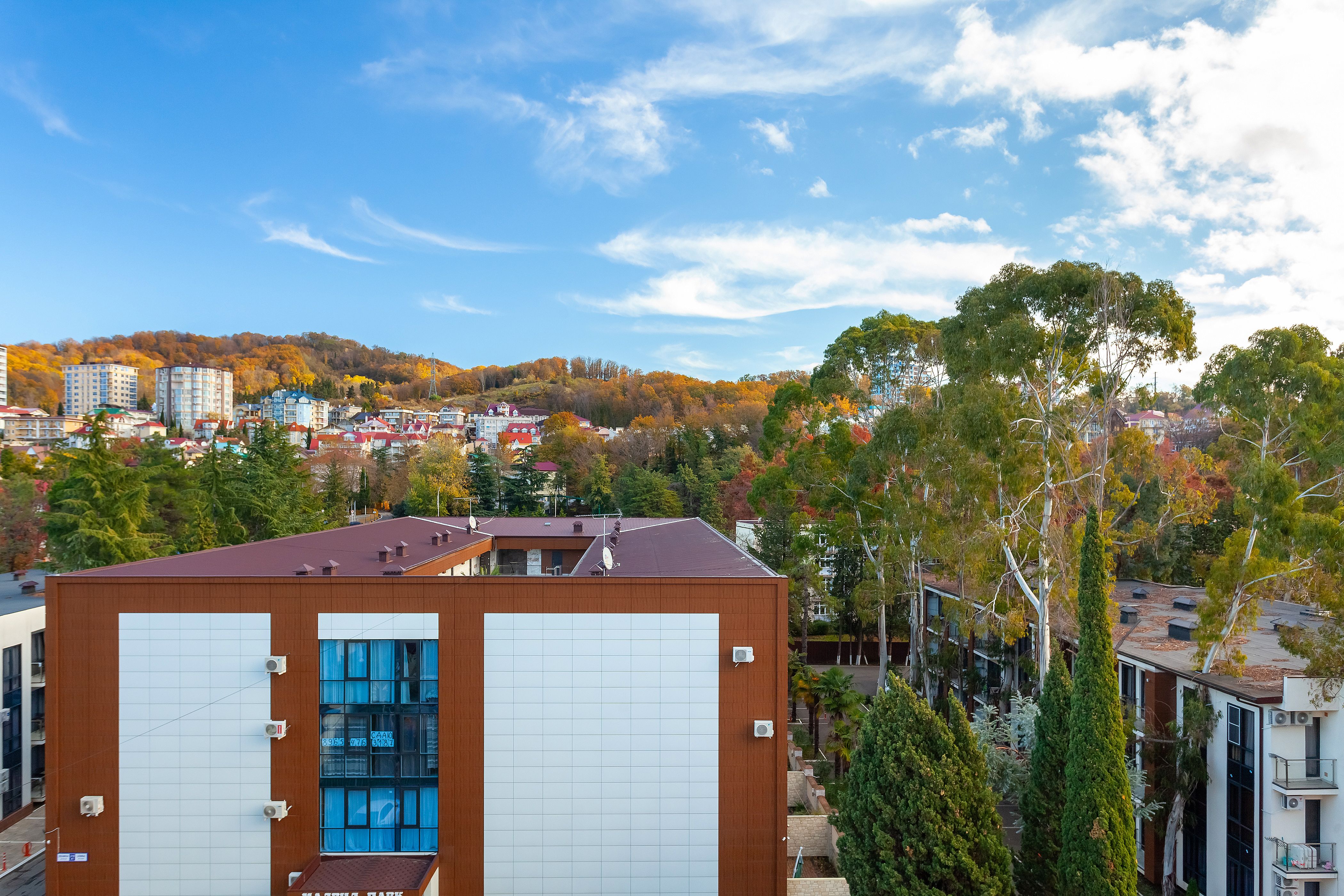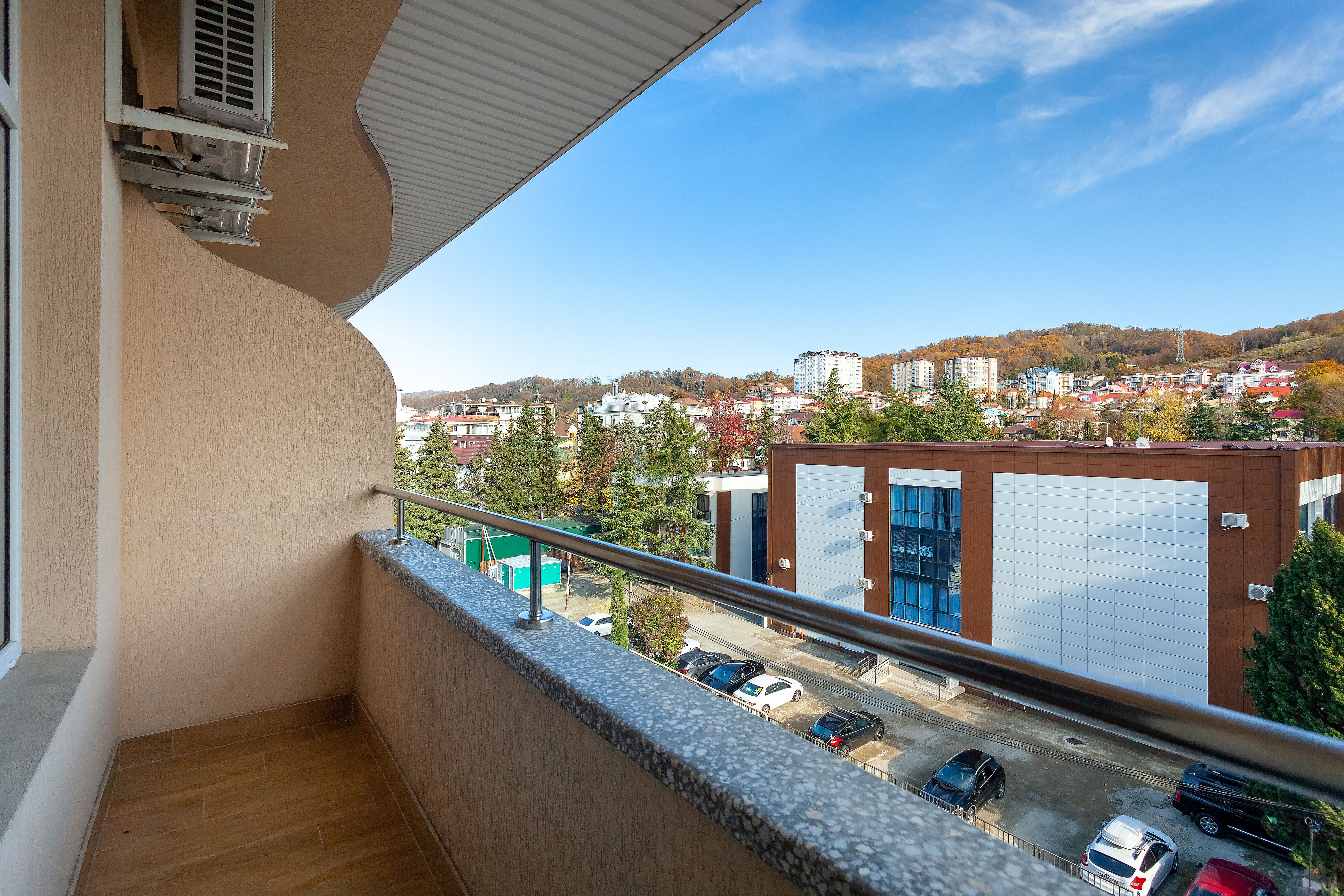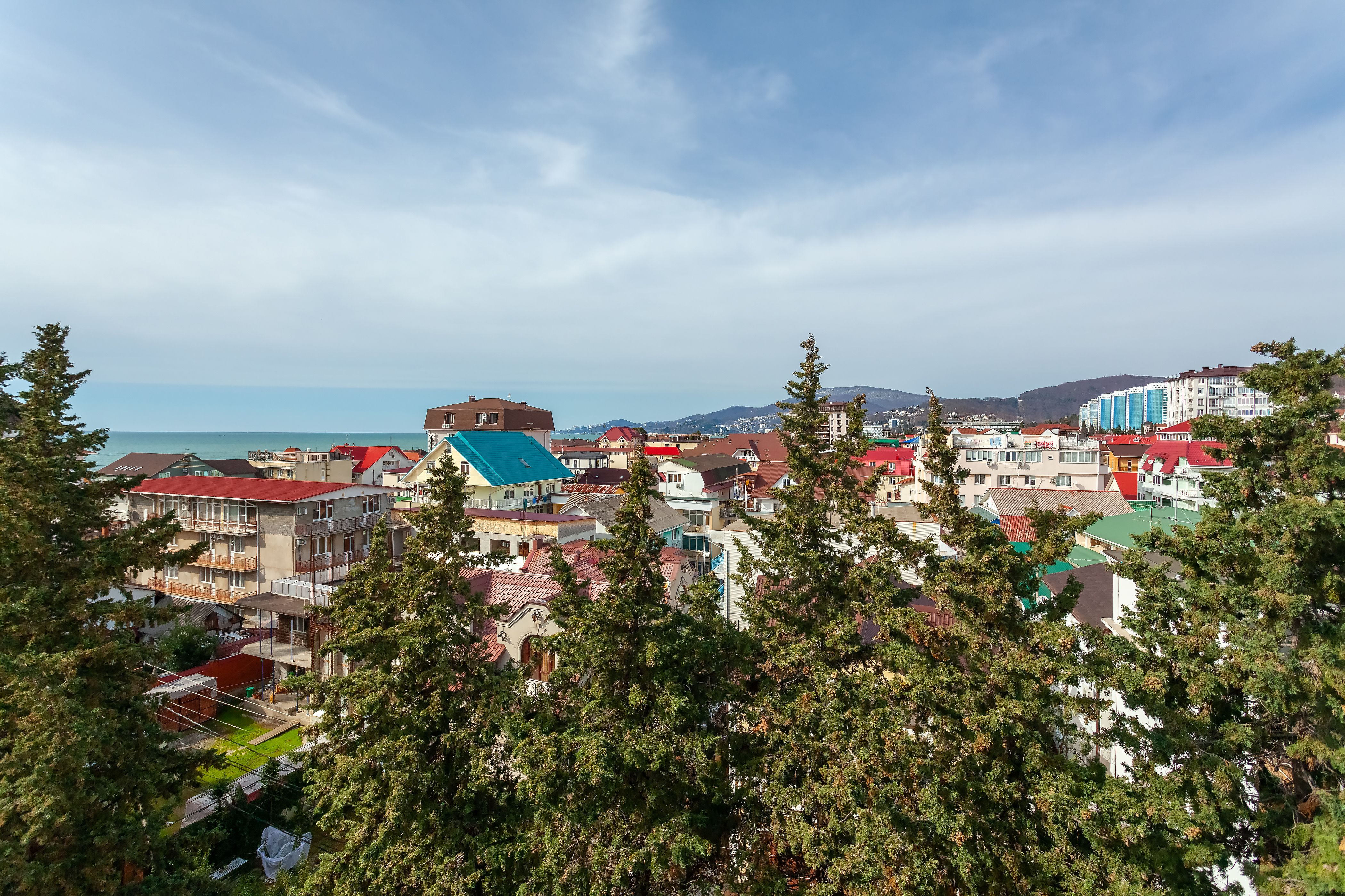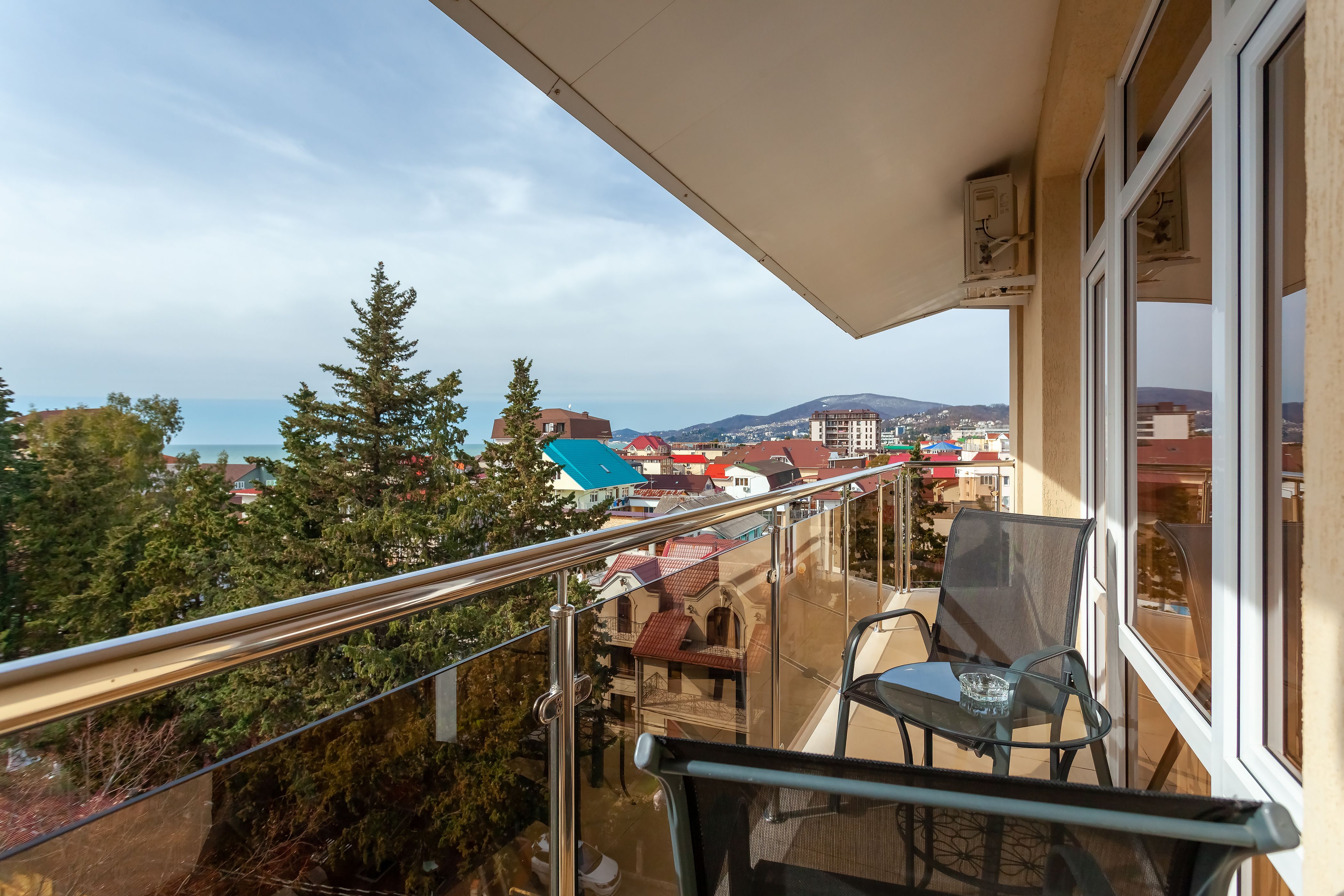 Вид из номера: на море, горы, парк