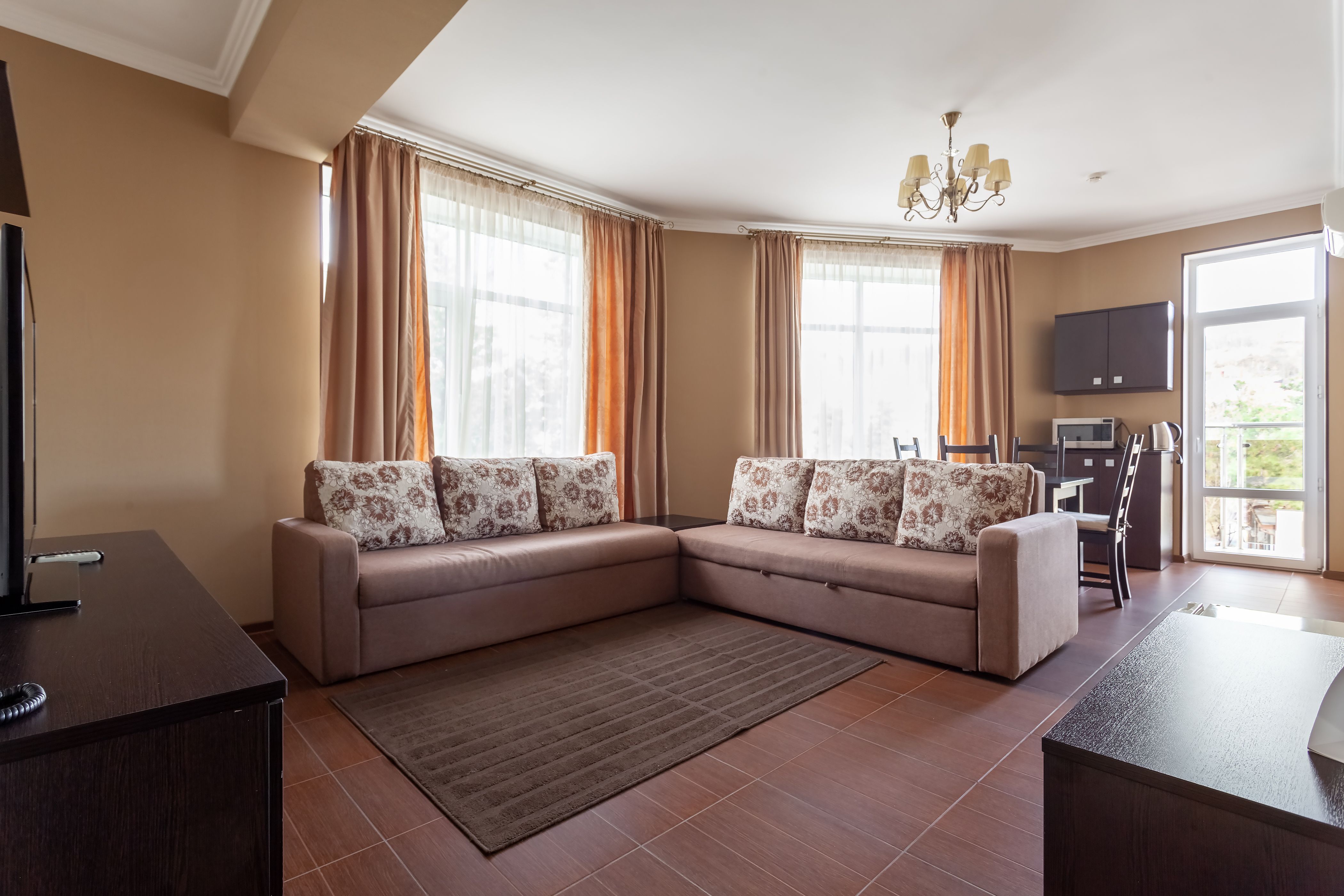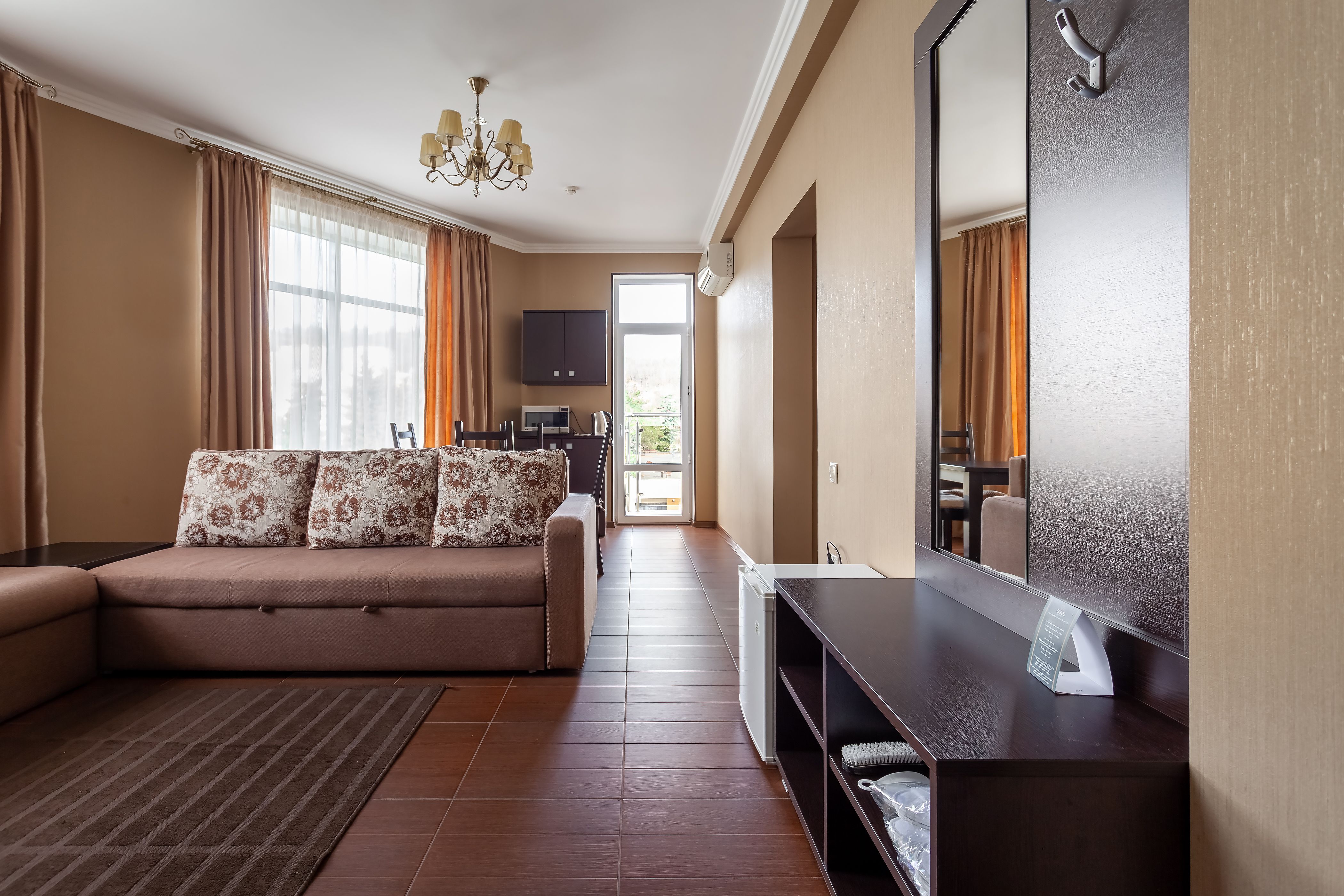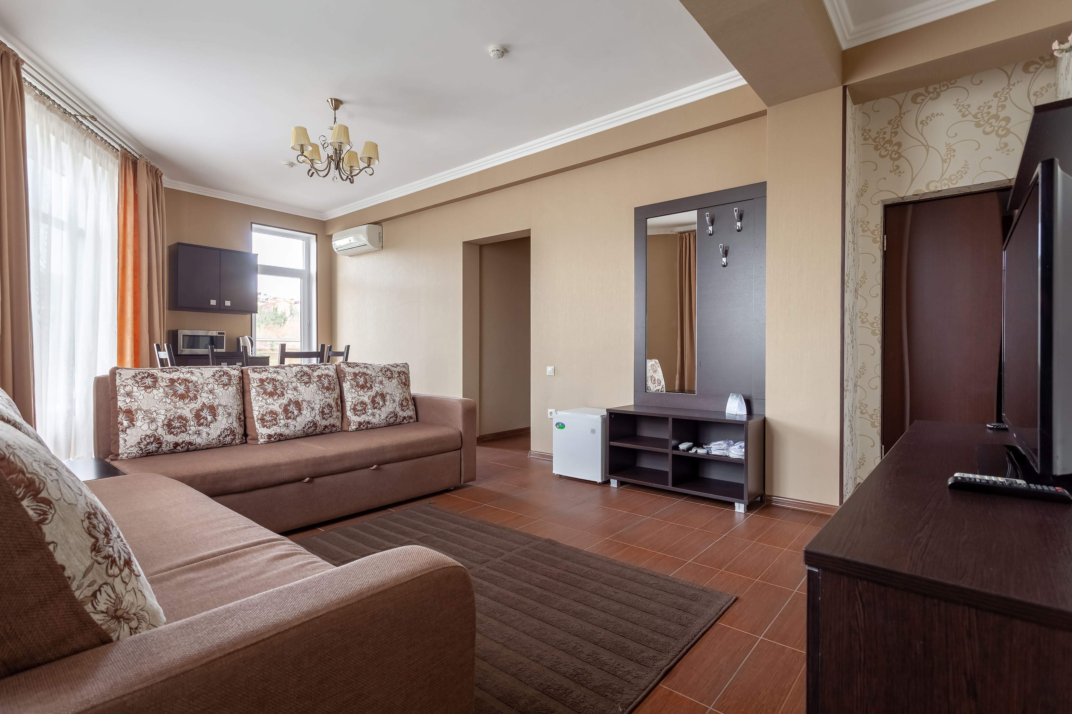 Комментарии: Просторный двухкомнатный номер с гостиной и спальней, оборудован встроенной кухней.