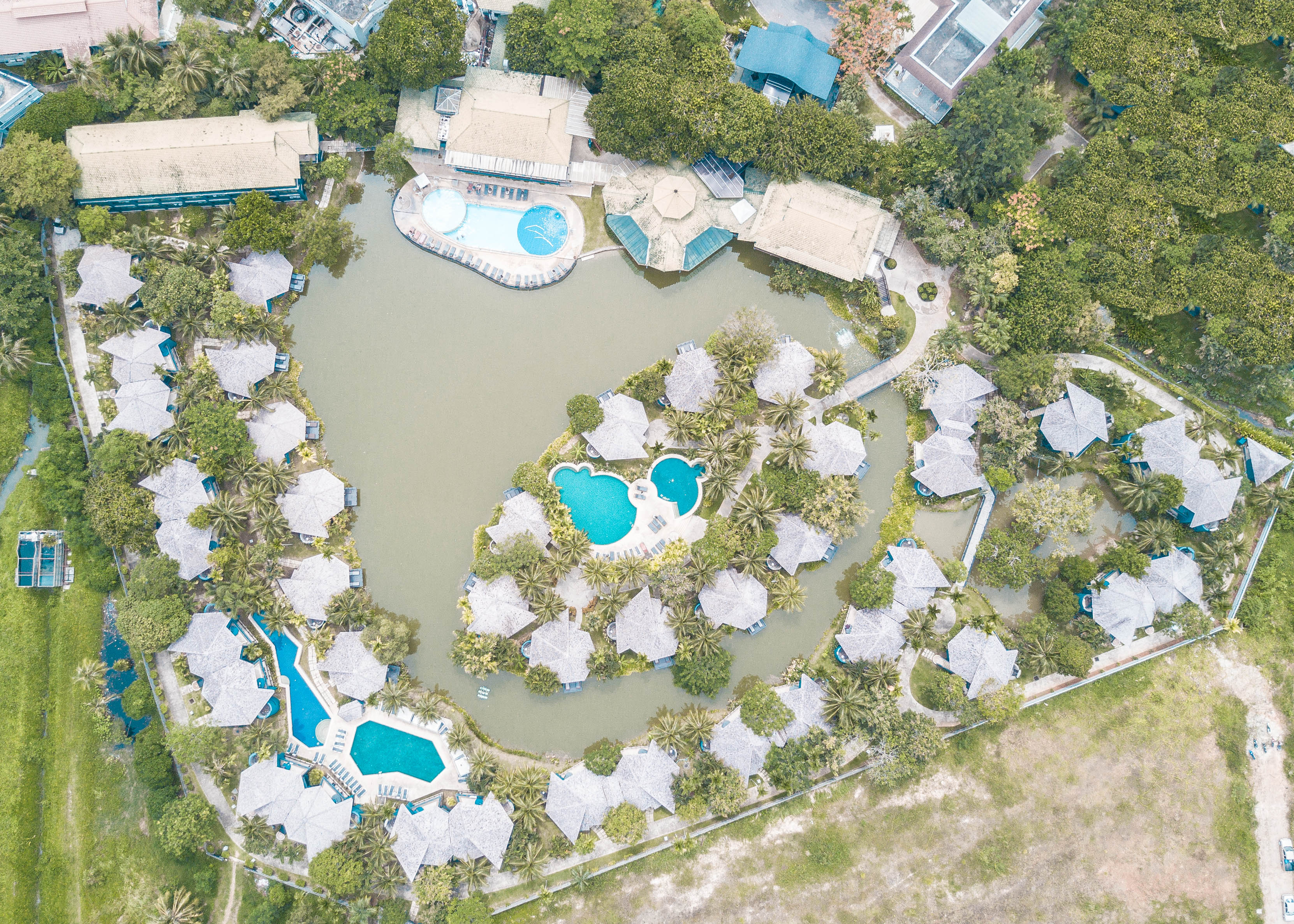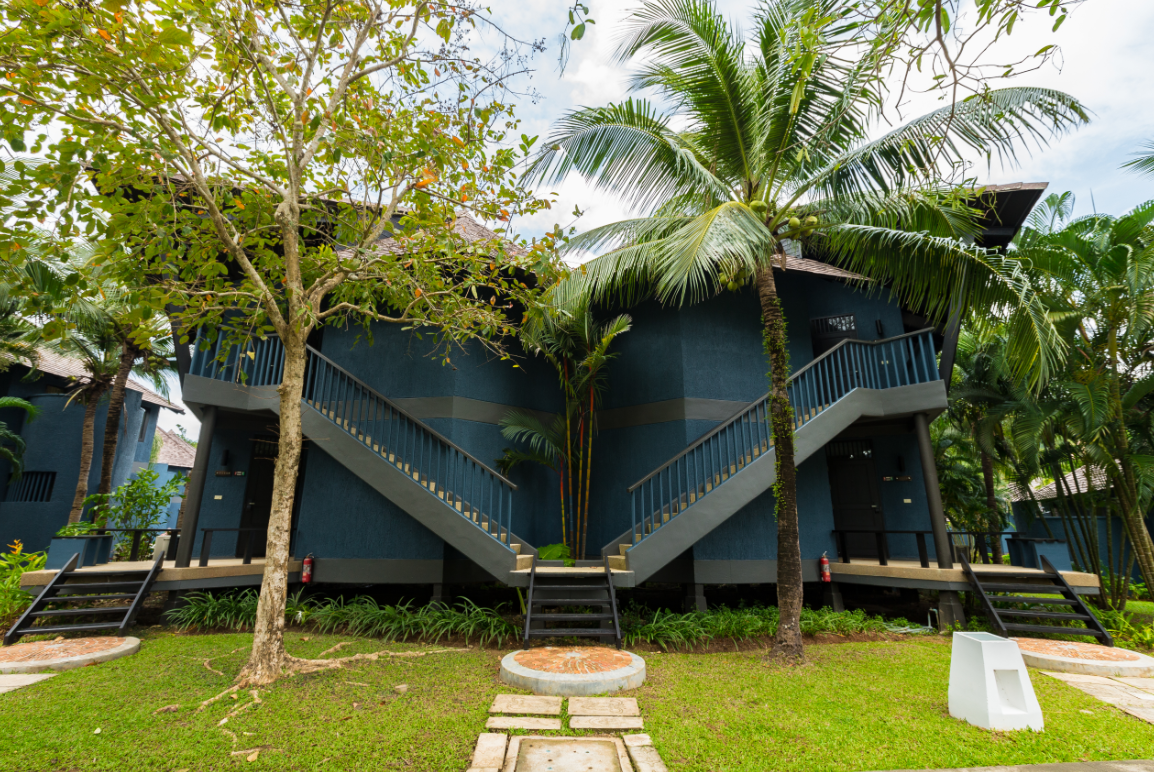Отель состоит из 4 корпусов разной этажности и 58 одноэтажных коттеджей. Находится примерно недалеко от пляжа.
