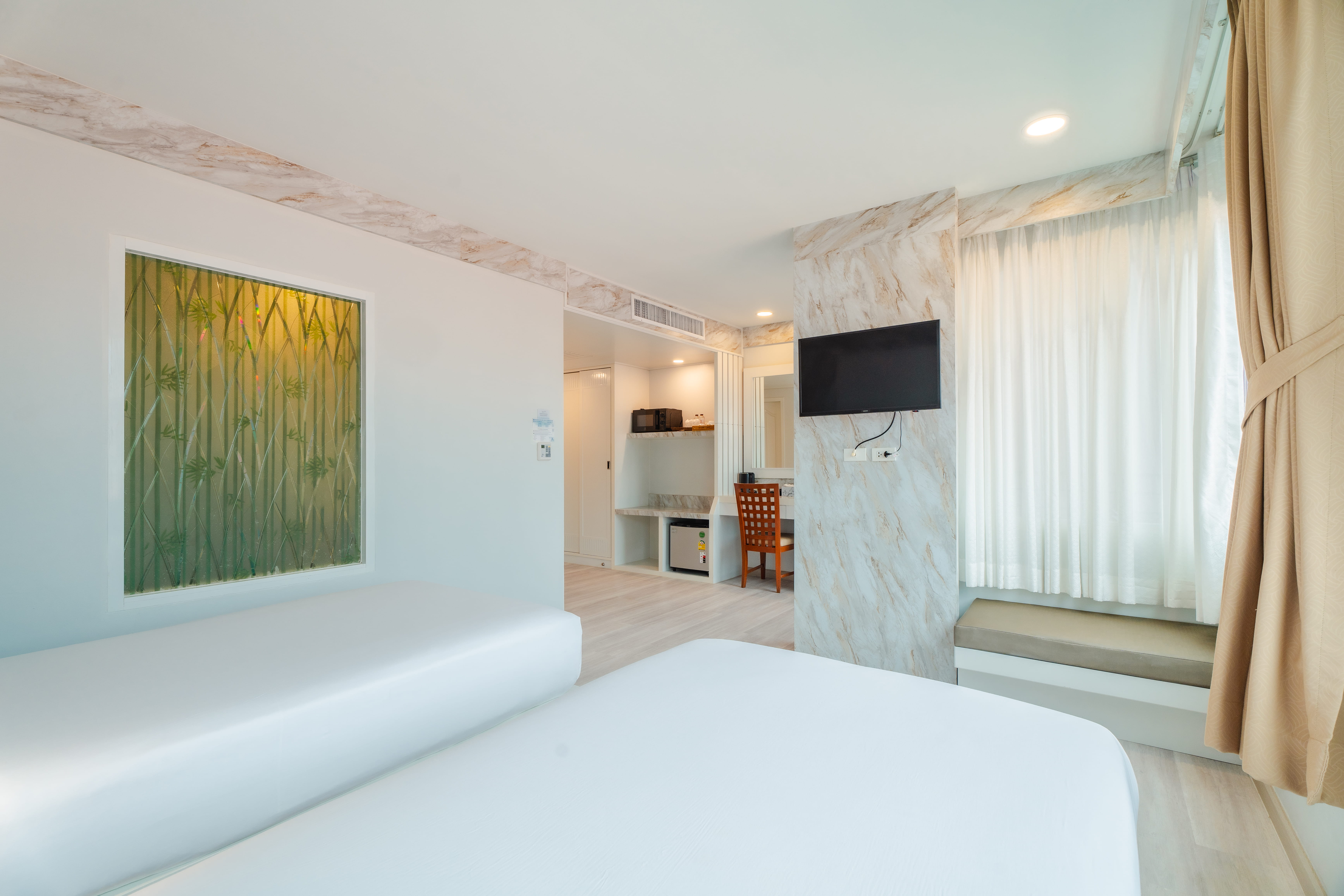 | Описание | Baumancasa Karon Beach Resort, расположенный всего в 50 метрах от пляжа Карон, располагает бассейном на крыше с панорамным видом на горизонт Пхукета. Номера оснащены собственным балконом и бесплатным Wi-Fi. Отель находится в 10 минутах ходьбы от рынка Карон и в 50 минутах езды от международного аэропорта Пхукет. Номера оформлены в современном тайском стиле с кафельным полом и деревянной мебелью. В каждом номере есть телевизор с плоским экраном и собственная ванная комната с феном. Также предоставляются принадлежности для приготовления кофе/чая и мини-бар с напитками. Гости отеля могут посетить спа-центр с массажем или позаниматься в тренажерном зале. Кроме того, они могут расслабиться в сауне. В ресторане отеля, где подают блюда из морепродуктов, а также блюда интернациональной кухни, предоставляется обслуживание в номер. |
